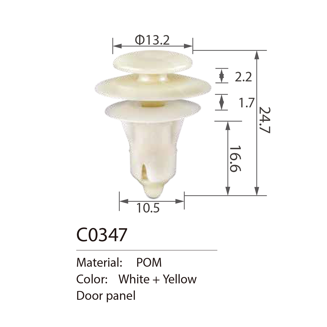 C0347 Is categorized as a DOOR TRIM PANEL CLIPAnd fits on the following cars: Ford