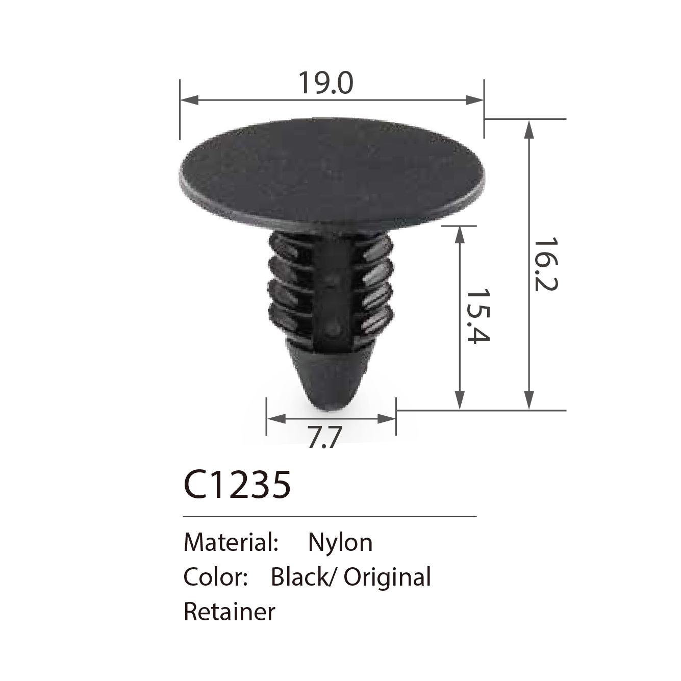 C1235 Is categorized as a FIRE TREE RIVETAnd fits on the following cars: Unknown